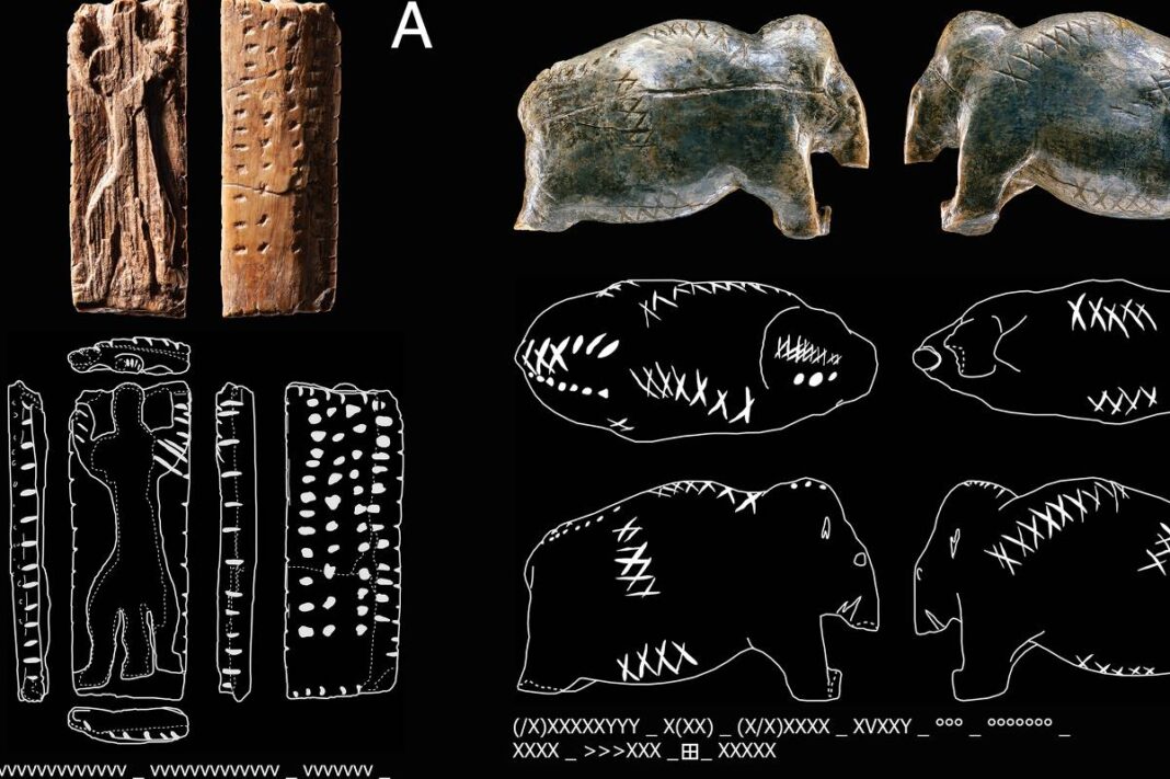 Ocorre que muitos desses bibelôs do Paleolítico estão parcialmente cobertos por marcas geométricas regulares, de diferentes formatos —traços retos, diagonais, outros que lembram as letras X, V e Y etc. Outros podem ter função decorativa, representando detalhes do pelo do animal esculpido, por exemplo.