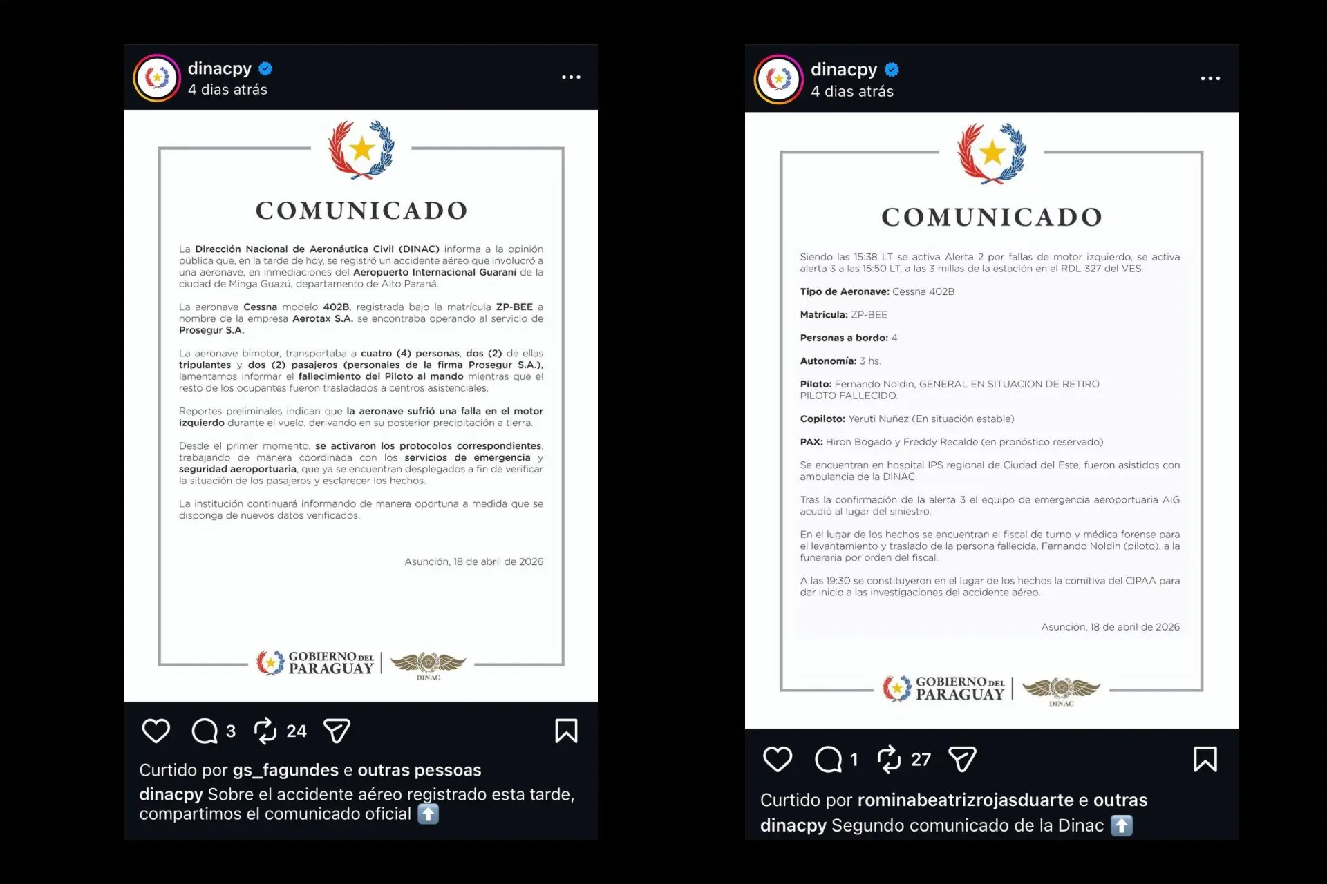 Uma análise preliminar da Direção Nacional de Aeronáutica (Dinac) aponta para uma falha no motor esquerdo durante o voo. O piloto morreu com o impacto e três funcionários da empresas foram encaminhados a hospitais.