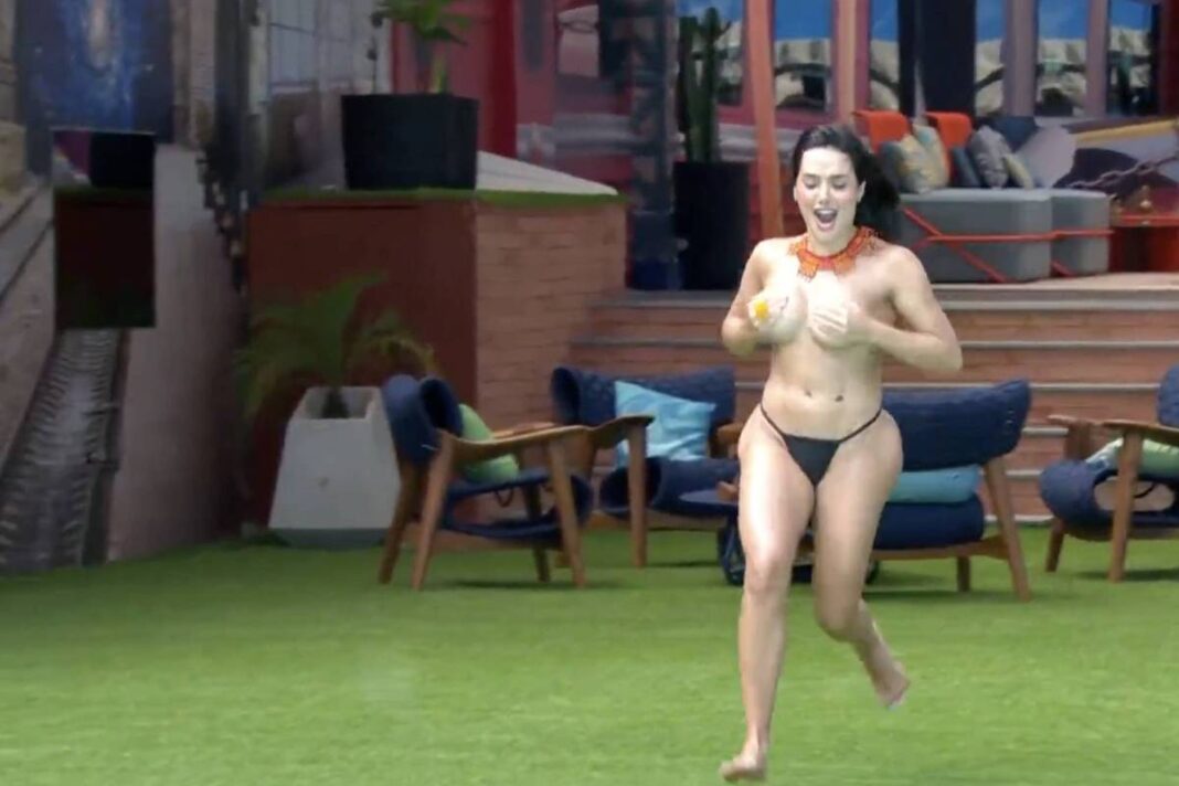Ela cumpriu a promessa. Depois de voltar do paredão, Jordana Morais pulou na piscina do BBB 26 sem a parte de cima do biquíni. O que ela não sabe é que a berlinda é falsa e que Breno Corã está confinado no quarto secreto. Breno chamou Juliano Floss para participar da dinâmica com ele.