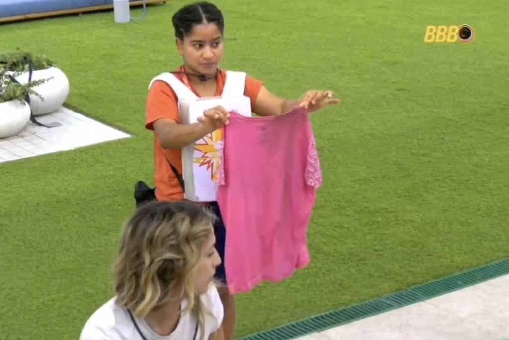 No final da tarde de terça-feira (10), a participante Milena Moreira, do BBB 26 (Globo), ficou indignada ao pegar suas roupas do varal. Uma das blusas da sister estava suja, como se tivesse sido usada de pano de chão.