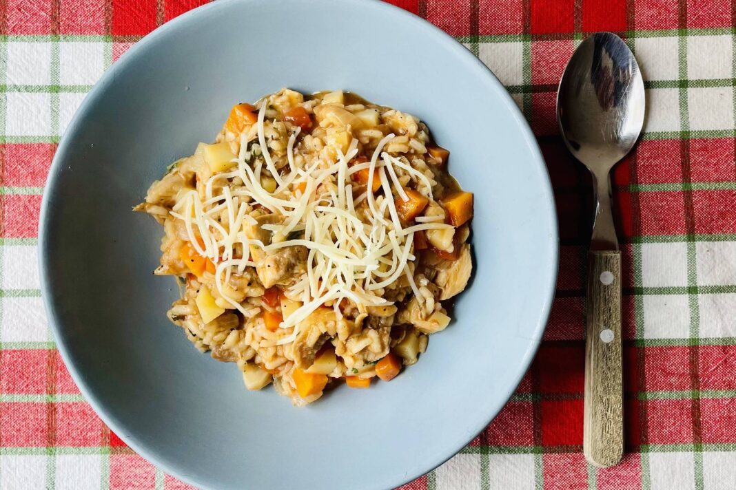 Decidi driblar o capricho do infante enfermo. Ofereci-lhe, com sucesso, uma canja seca. Tecnicamente, um risoto de frango com legumes.