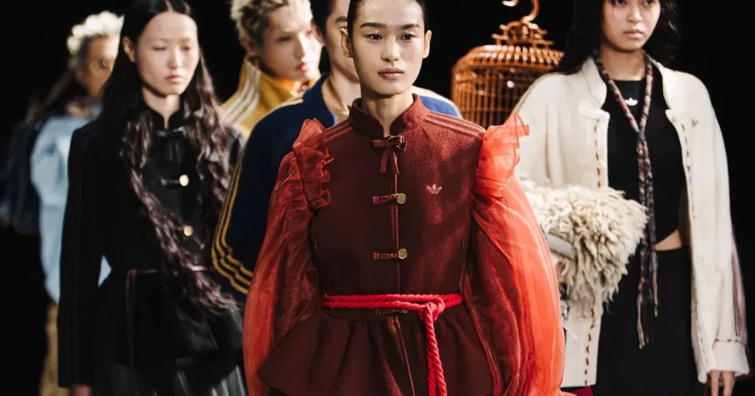 “Para mim, foi ver meus amigos (asiáticos) que cresceram na América — seja em San Mateo, San Francisco, na Bay Area ou no interior de Nova York — fazendo unboxing e dizendo, com sotaque californiano: ‘Oi, gente, olha essa nova jaqueta estilo mandarim viral’”, riu Li, que é sino-americano. “Achei interessante esse contraste de alguém que é, em muitos aspectos, muito americano, experimentando a cultura asiática através da Adidas.”