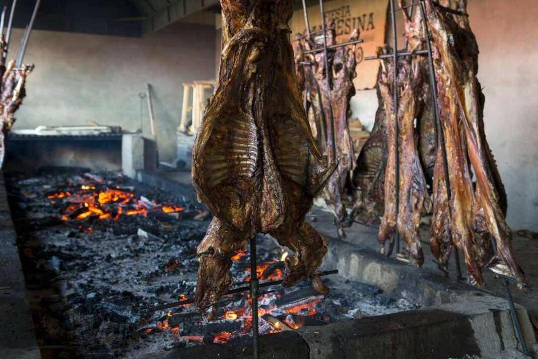 São animais jovens, de 3 a 4 meses, criados 100% a pasto. O resultado aparece no prato: carne tenra, sabor suave e limpo, gordura delicada que derrete com facilidade. Na parrilla, o tempero é mínimo —apenas sal— para que o terroir fale mais alto.