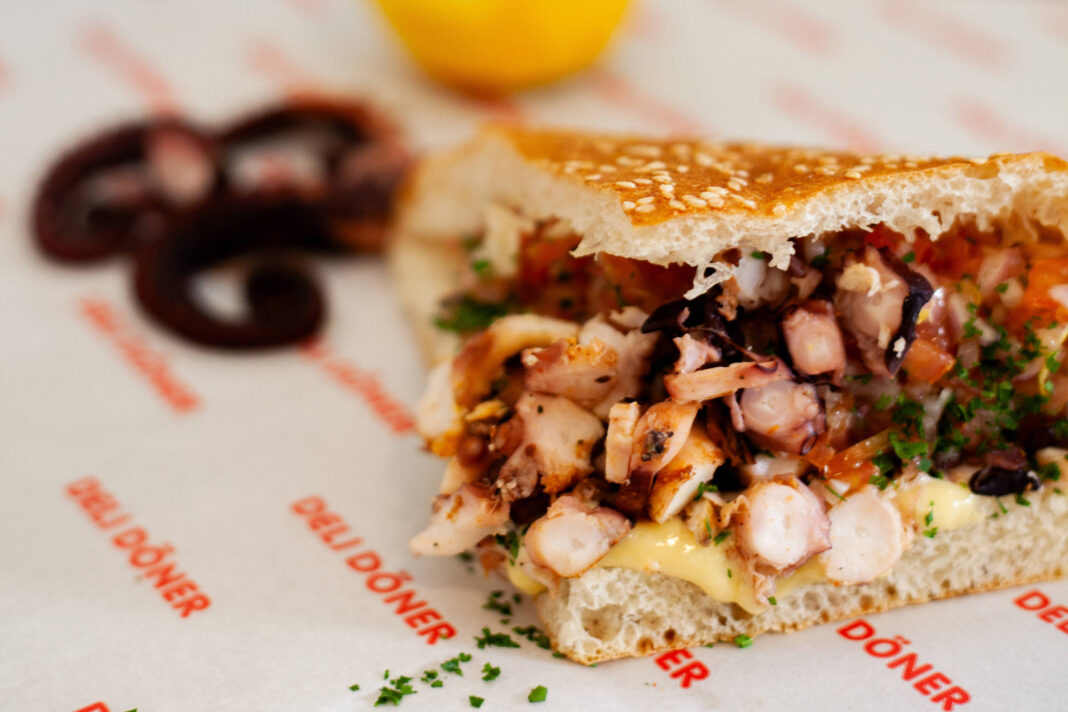 Polvo grelhado, maionese aïoli, vinagrete e salsinha em pão achatado. Esses são ingredientes de um döner, sanduíche recheado com carne feita em espeto giratório, que está fazendo sucesso em São Paulo