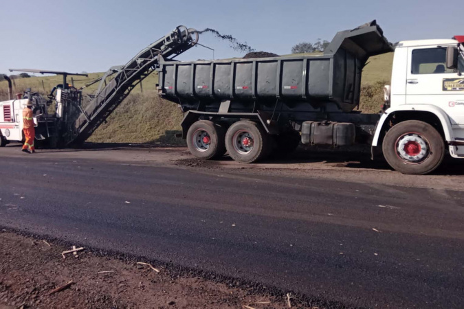 DOAÇÃO – Parte do fresado é utilizado pelo próprio DER/PR na execução de alguns serviços emergenciais, mas a maioria é destinada para doação a entidades e principalmente municípios.