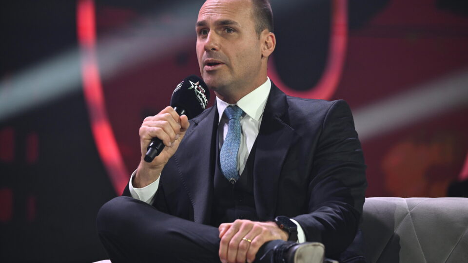 Questionado sobre seu pai, o ex-presidente Jair Bolsonaro (PL), Eduardo citou o quadro de broncopneumonia bacteriana dizendo que “ele quase morreu recentemente”.