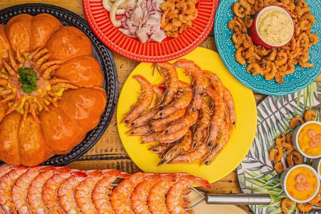 Nas mesas, serão servidos camarões assados no espeto, camarão empanado e recheado com Catupiry, camarão crocante com molho tártaro, manjubinha e isca de peixe.