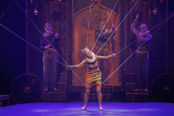 Livremente inspirado no ensaio “Sobre o Teatro de Marionetes”, de Heinrich von Kleist, o espetáculo também dialoga com as gags — esquetes humorísticas do universo circense — e com a peça “Os Gigantes da Montanha”, de Luigi Pirandello. Em cena, os bailarinos transitam entre o humano e o fantasmagórico, incorporando a metáfora das marionetes para refletir sobre a condição existencial do homem.