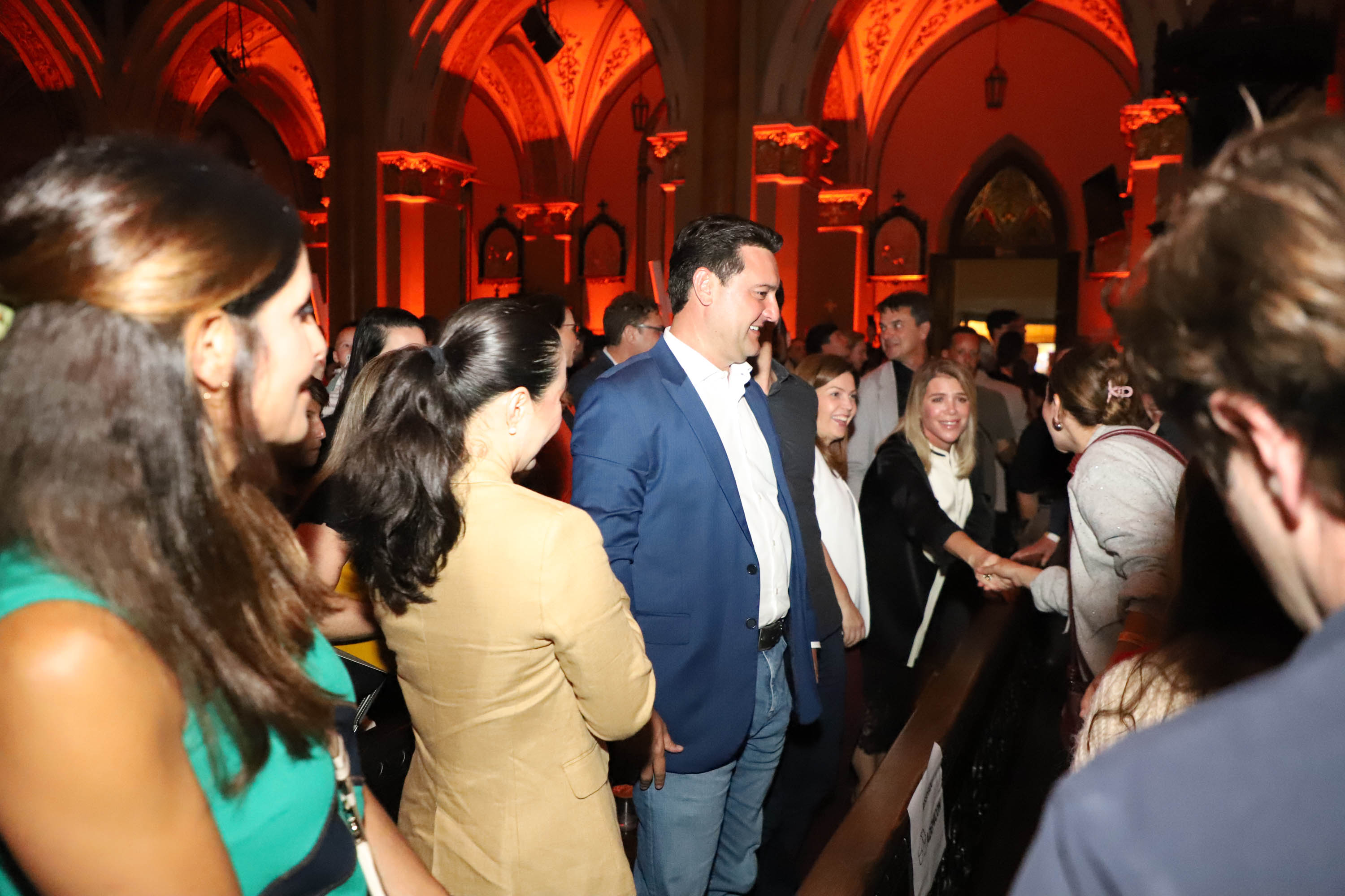 O governador do Paraná, Carlos Massa Ratinho Junior, o prefeito de Curitiba, Eduardo Pimentel, acompanhados das primeiras-damas Luciana Saito Massa e Paula Mocellin, e o secretário de Estado das Cidades, Guto Silva, com sua esposa Karina Amadori, acompanharam, na noite de sexta-feira (28), a sessão especial da Catedral de Luz, uma das atrações mais aguardadas do Natal de Curitiba.