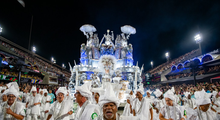 Maior campeã do carnaval carioca, a azul e branca aposta em um enredo histórico-religioso sobre Custódio Joaquim de Almeida, figura africana ligada à formação do batuque no Rio Grande do Sul no século XIX.