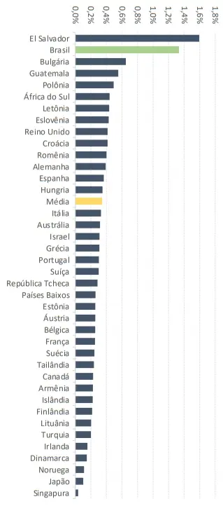 O levantamento utilizou dados do Fundo Monetário Internacional e da Organização para Cooperação e Desenvolvimento Econômico para assegurar a comparação internacional. Segundo o Tesouro, as despesas seguem o padrão metodológico da classificação internacional Cofog, adotado também pelos demais países analisados.