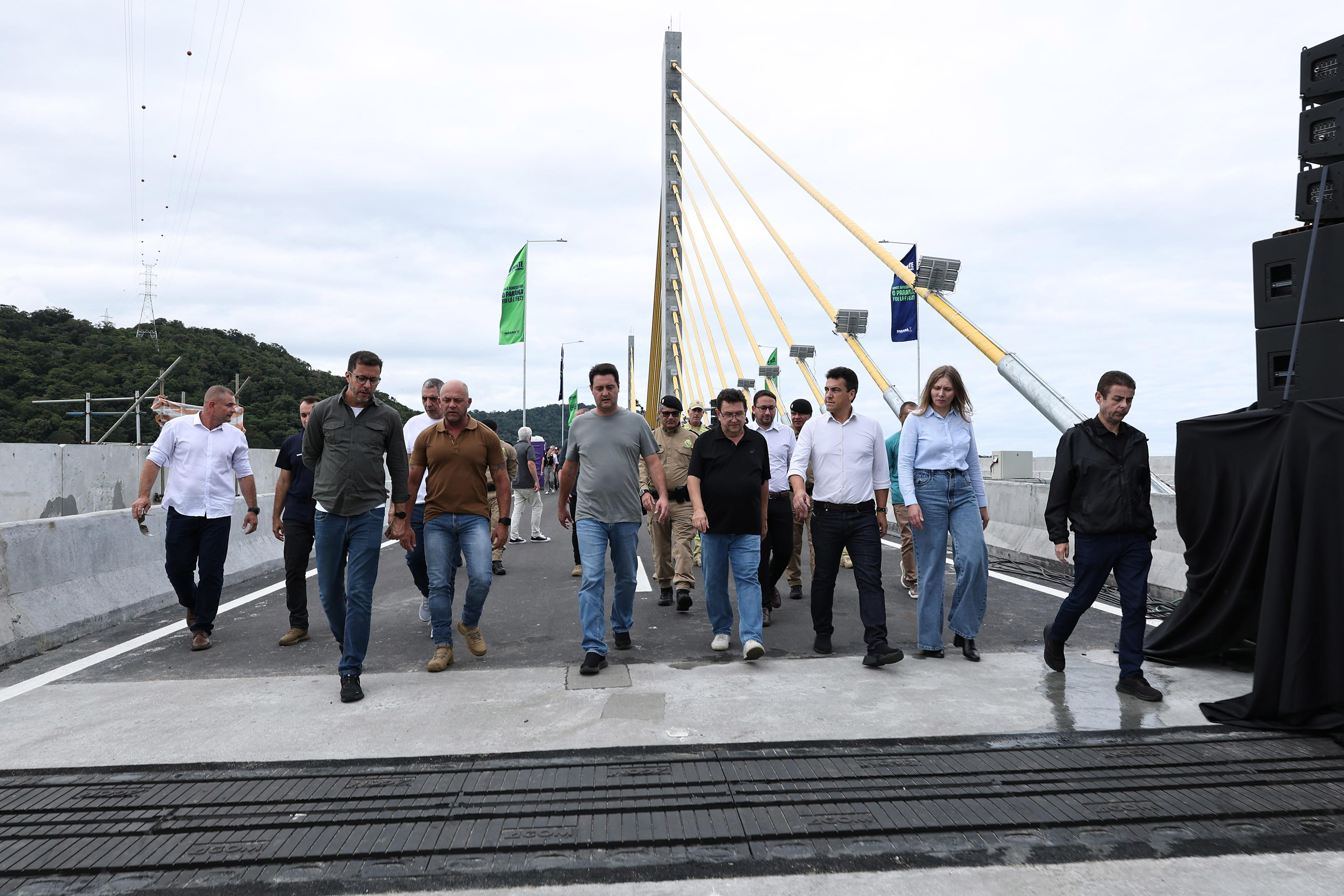 Antes da cerimônia oficial de inauguração, o governador Carlos Massa Ratinho Junior fez na tarde desta quinta-feira (30) uma vistoria técnica na Ponte de Guaratuba.