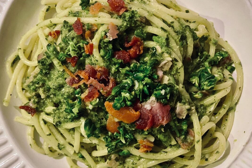Por isso, a receita desta semana é um espaguete feito justamente com brócolis, que meu filho de 12 anos adora (quem faz, normalmente, é a mãe… eu achei justo pegar emprestada só desta vez).