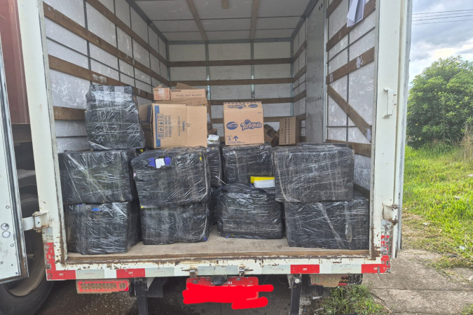 Os veículos, uma carreta e um caminhão baú de pequeno porte, estavam estacionados em uma rua do bairro. Os condutores, um homem de Santos (SP), que dirigia a carreta, e outro de Curitiba, responsável pelo caminhão menor, foram presos em flagrante.