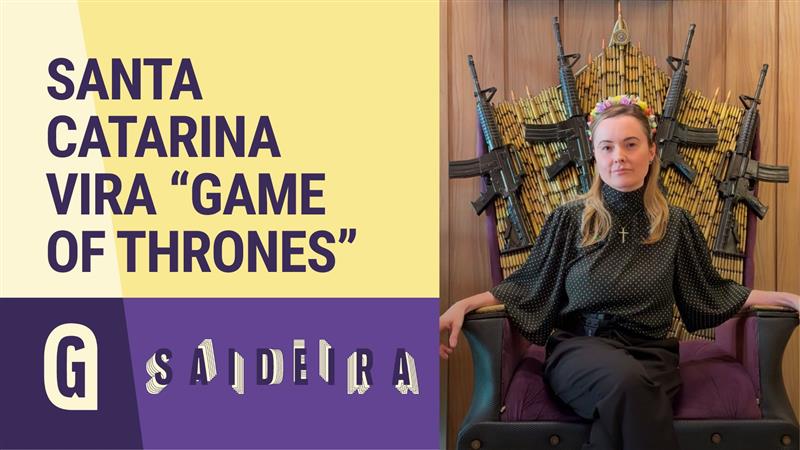 Em seguida, o programa passa para a disputa política que agita Santa Catarina. A possível candidatura de Carlos Bolsonaro ao Senado desencadeou uma série de reações no estado, especialmente entre lideranças da própria direita. A deputada Júlia Zanatta, por exemplo, publicou uma foto sentada em um trono de fuzis, em referência à série “Game of Thrones”, com a legenda “Game of Santa Catarina”. O “Saideira” discute o impacto dessa estética e o que ela revela sobre o momento atual da direita brasileira.