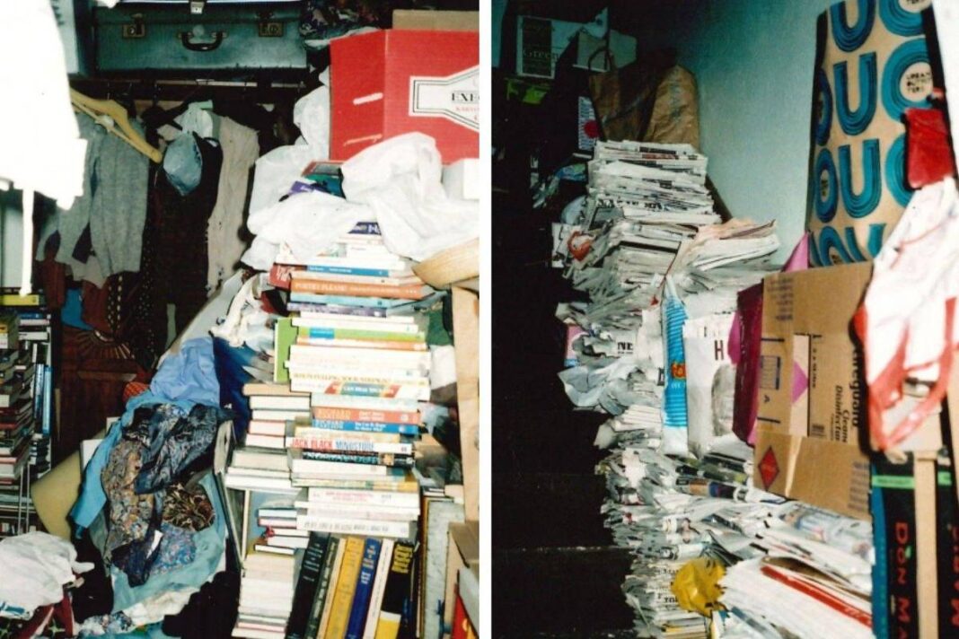 “Eu precisava escalar a pilha para chegar a outro cômodo. Havia sacos e sacos de livros e jornais empilhados que eu havia coletado por 20 anos.”