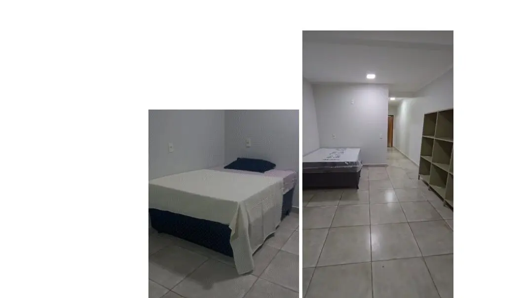 As acomodações incluem cozinha com possibilidade de preparo e armazenamento de alimentos, banheiro com chuveiro com água quente, geladeira, armários, cama de casal e TV.