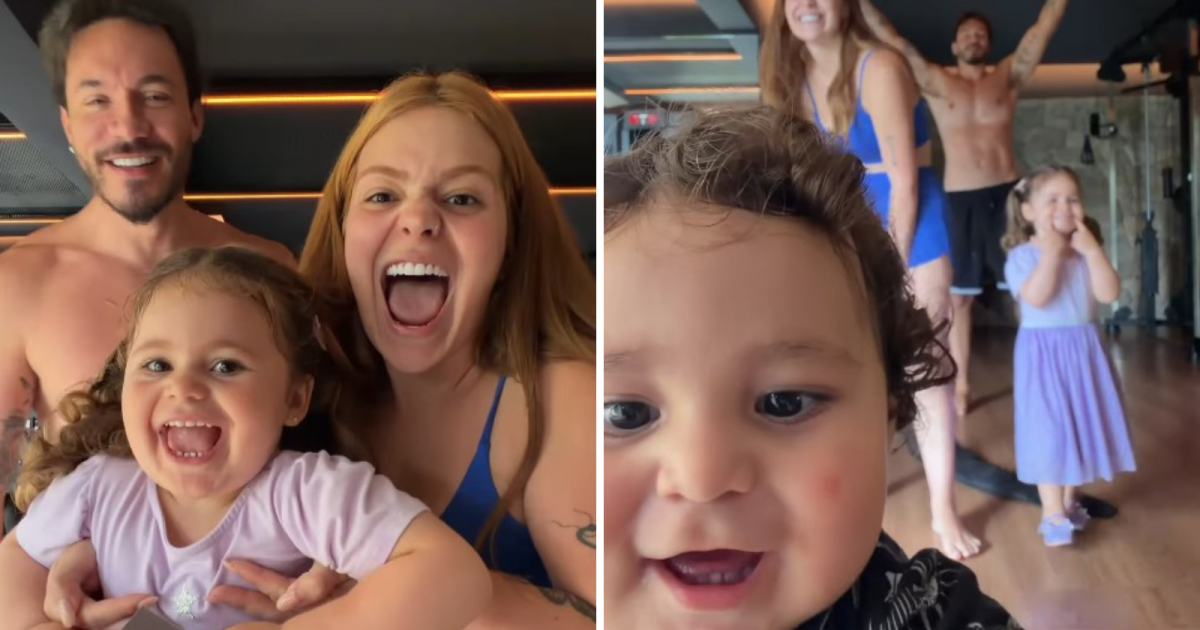 Enquanto os pais faziam a brincadeira, Lua e Ravi rodeavam os ex-BBBs e logo invadiram a câmera. Esbanjando simpatia, o caçula surge na câmera dando um “oi” para os seguidores.